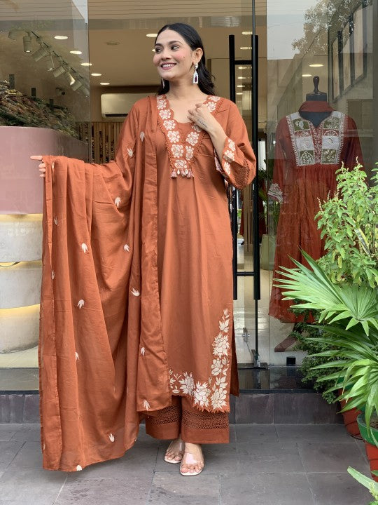 Elevate your wardrobe with our Mul Cotton 3 Piece Suit Set, a perfect blend elegance and comfort. This stunning ensemble is ideal for any special event where you want to leave a lasting impression. Style it with statement jewelry and heels for a complete look.