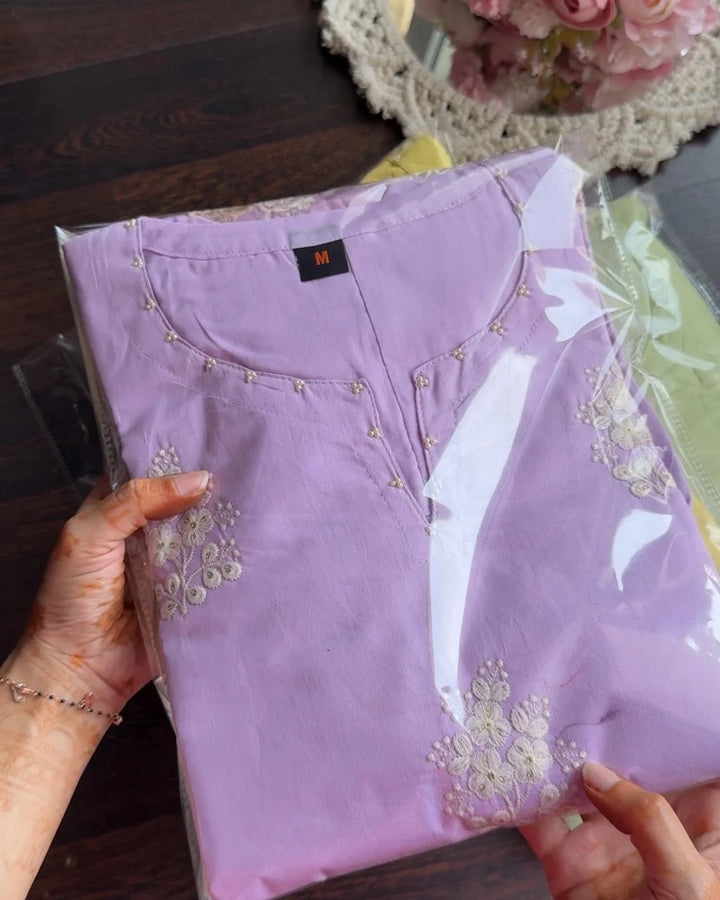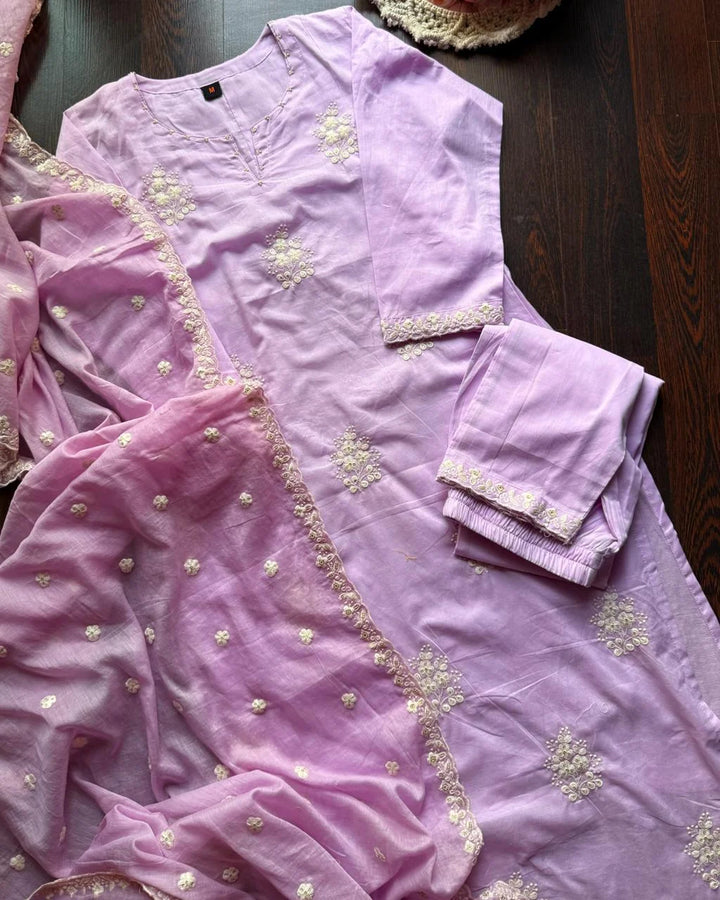 Elevate your wardrobe with our Pure Mul Cotton Embroidered Suit Set, a perfect blend elegance and comfort.