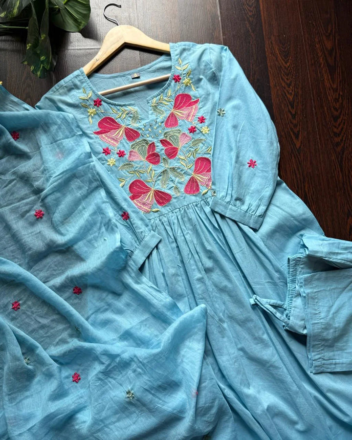 Note: Every piece is hand-embroidered & unique. Hence, embroidery may differ per piece. Colour may slightly vary due to photographic lighting. Fabric and style are consistent.