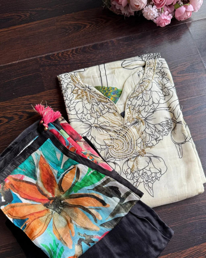 Note: Every piece is hand-embroidered & unique. Hence, embroidery may differ per piece. Colour may slightly vary due to photographic lighting. Fabric and style are consistent.