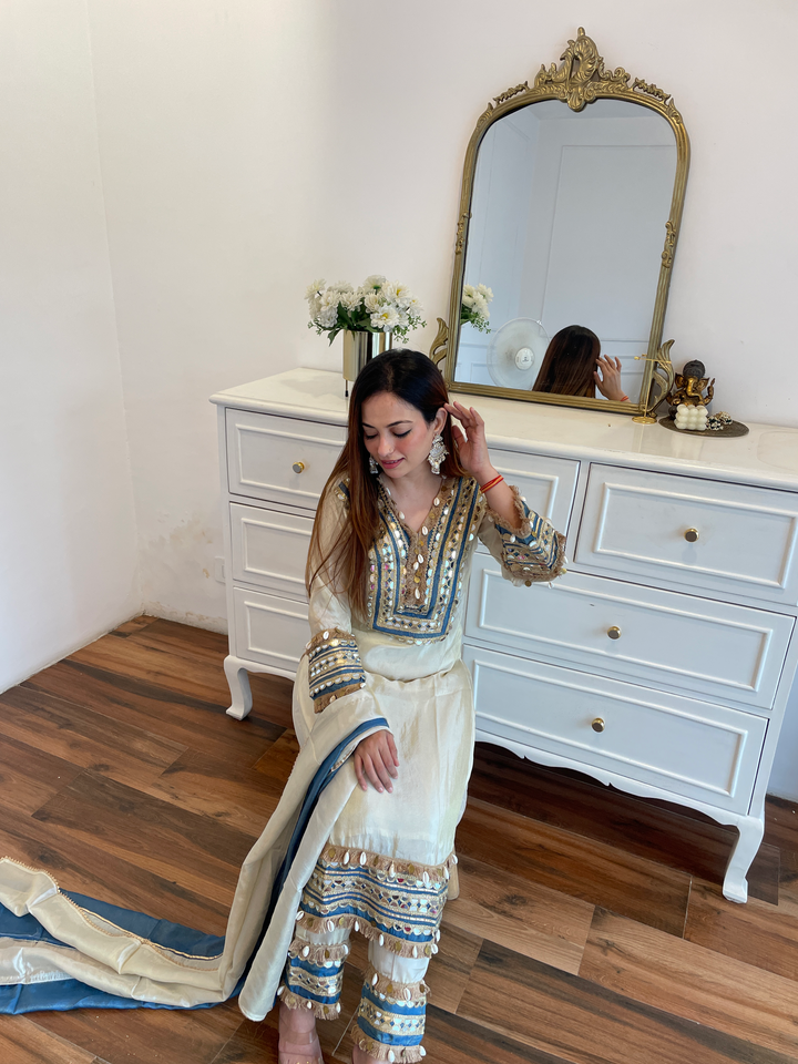 This stunning ensemble is ideal for Upcoming festivities or for any special event where you want to leave a lasting impression. Style it with statement jewellery and heels for a complete look.