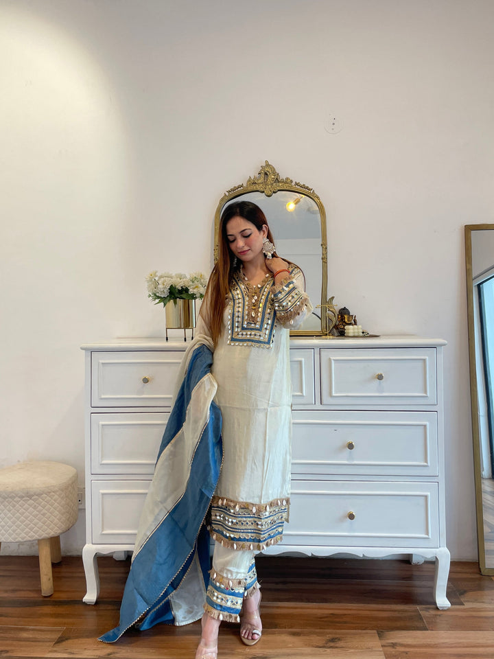 Elevate your wardrobe with our Premium Embroidered Tissue Pom Pom Suit Set, a perfect blend elegance and comfort.