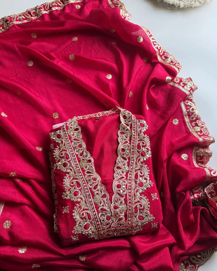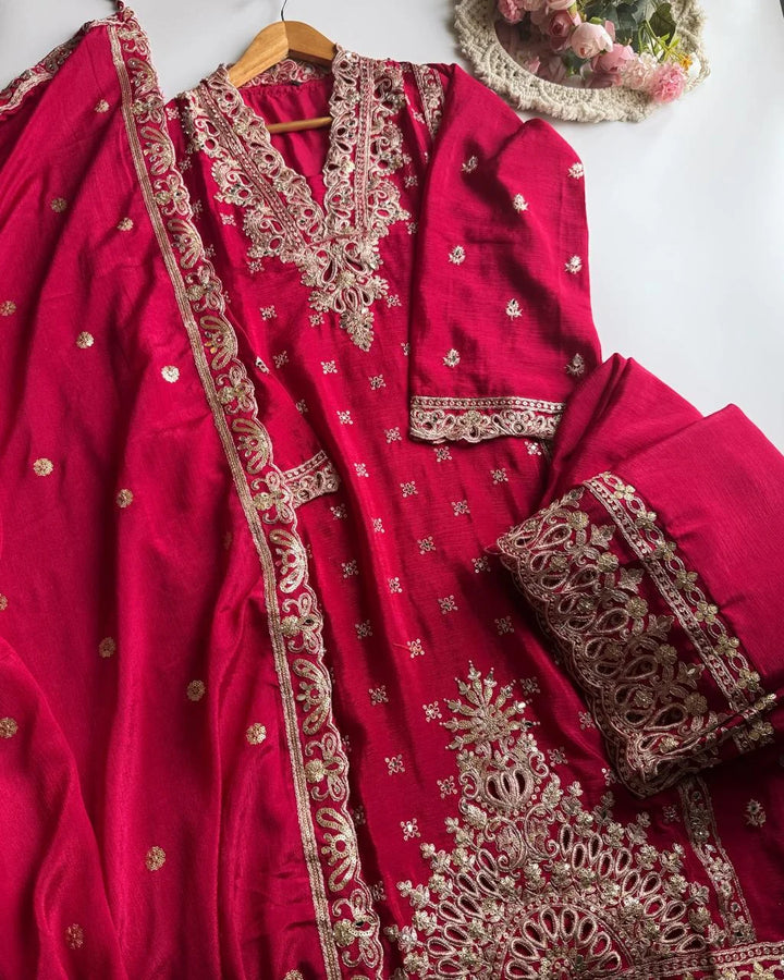 KARWA SPECIAL RED PREMIUM LASER CUT EMBROIDERED SUIT SET