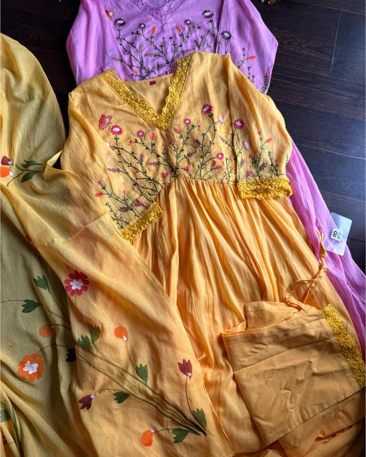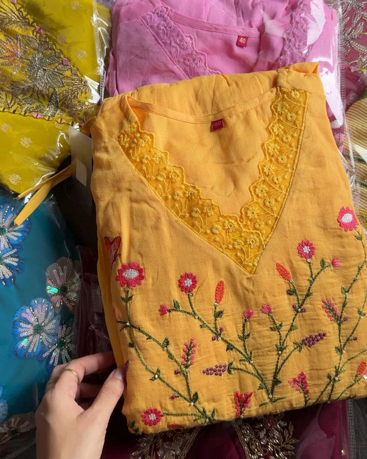 Note: Every piece is hand-embroidered & unique. Hence, embroidery may differ per piece. Colour may slightly vary due to photographic lighting. Fabric and style are consistent.