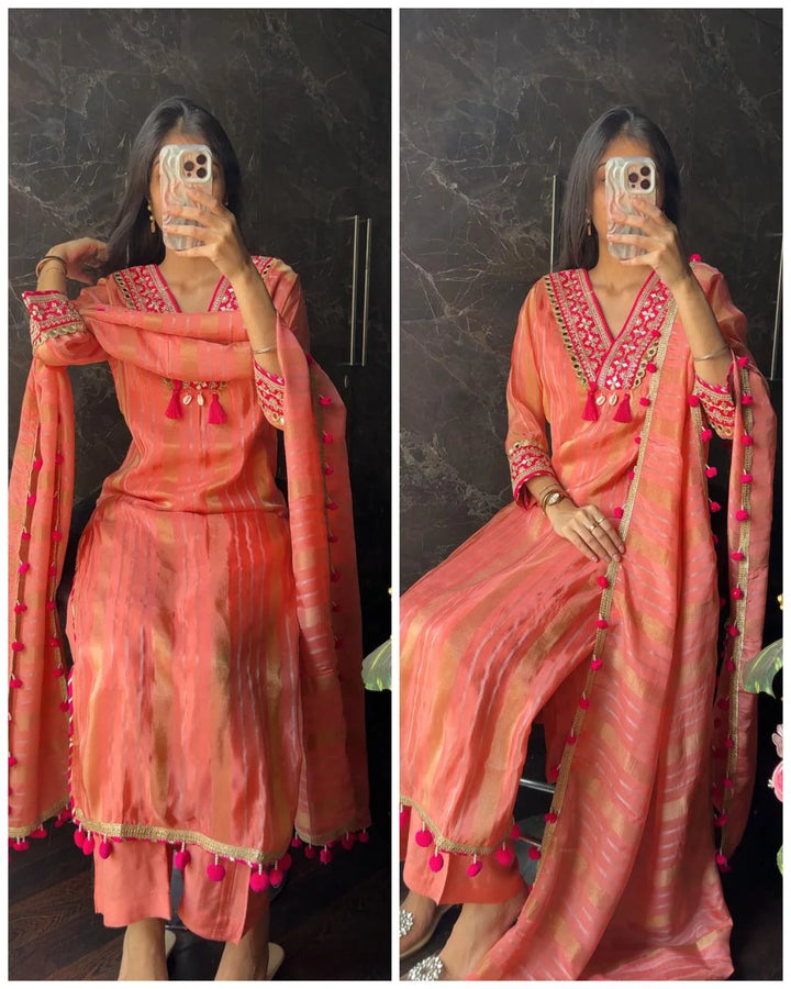 Elevate your wardrobe with our Premium Embroidered Tissue Pom Pom Suit Set, a perfect blend elegance and comfort.