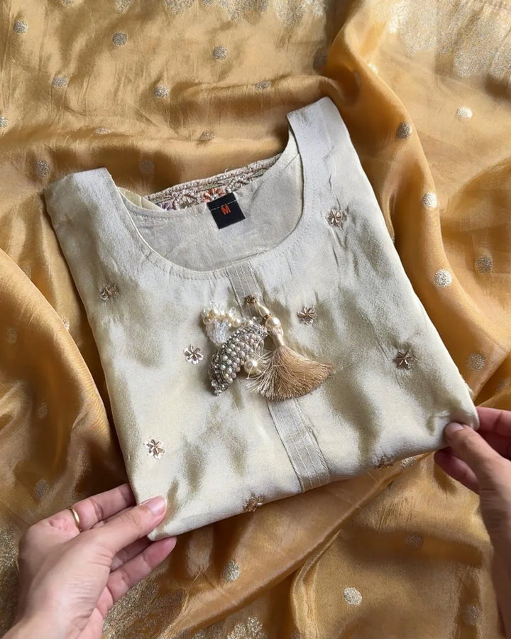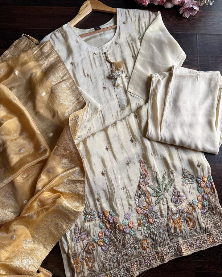 MIRA IVORY PREMIUM GLASS TISSUE HANDWORK SUIT