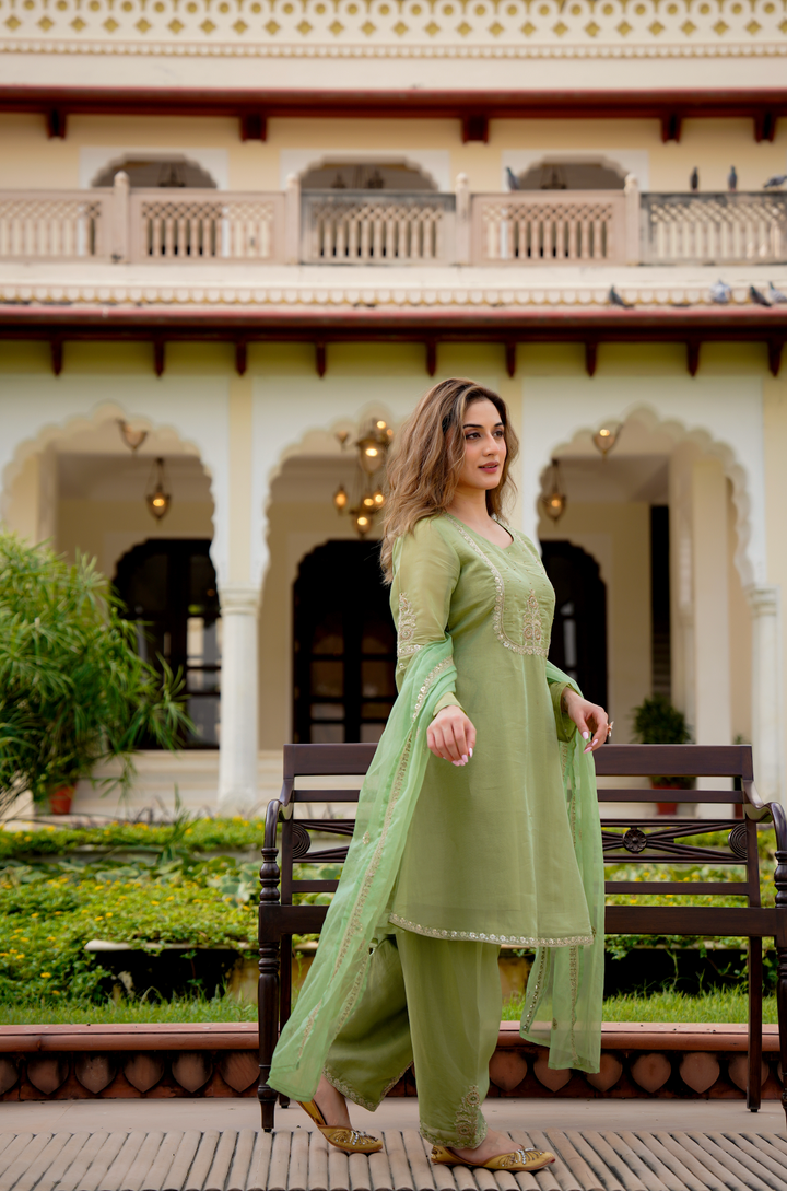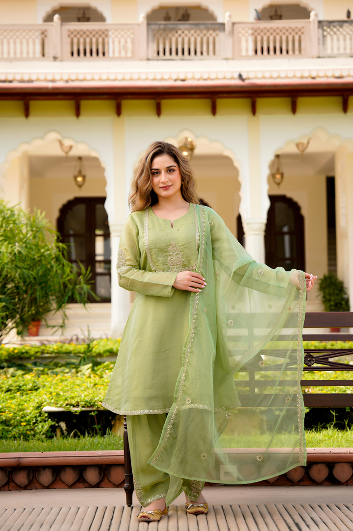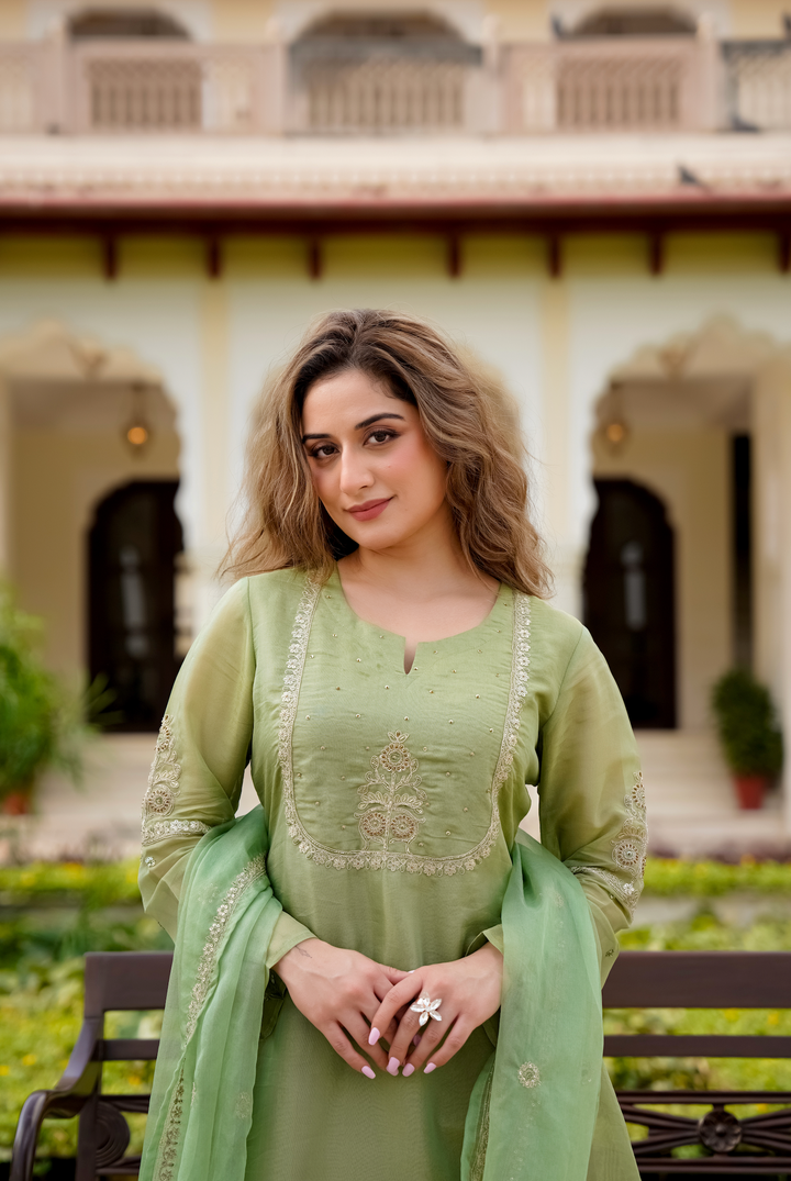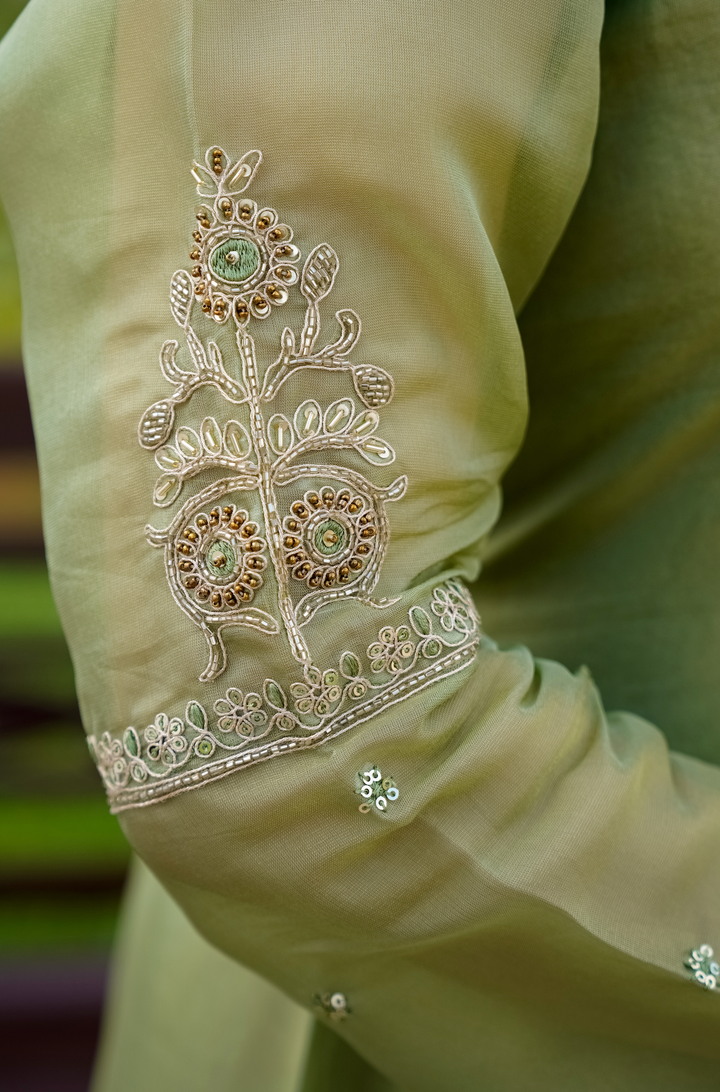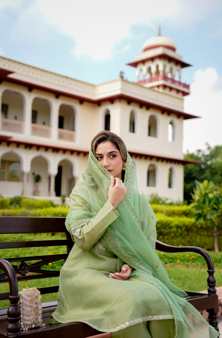 NARGIS SAGE GREEN TISSUE SHIMMER SUIT SET