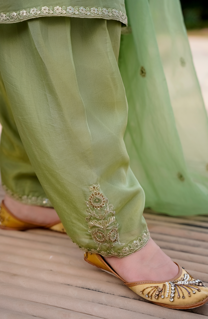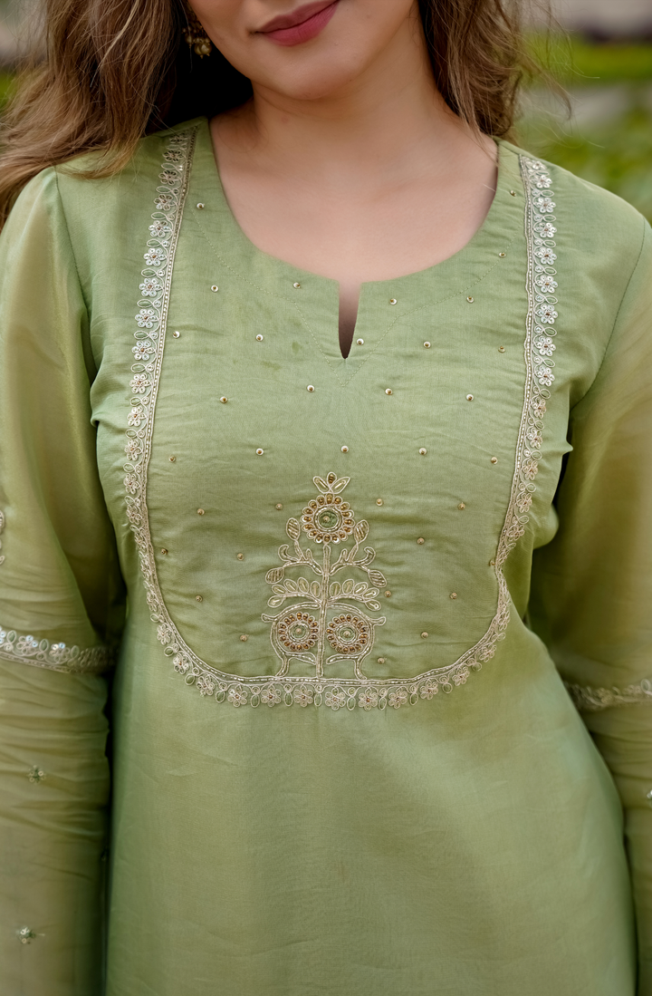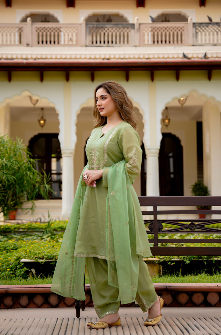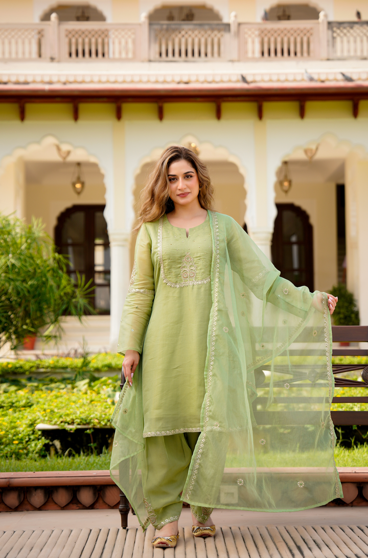 NARGIS SAGE GREEN TISSUE SHIMMER SUIT SET