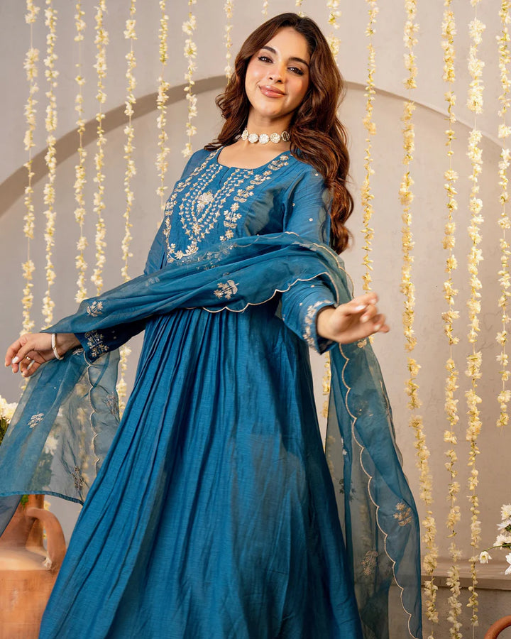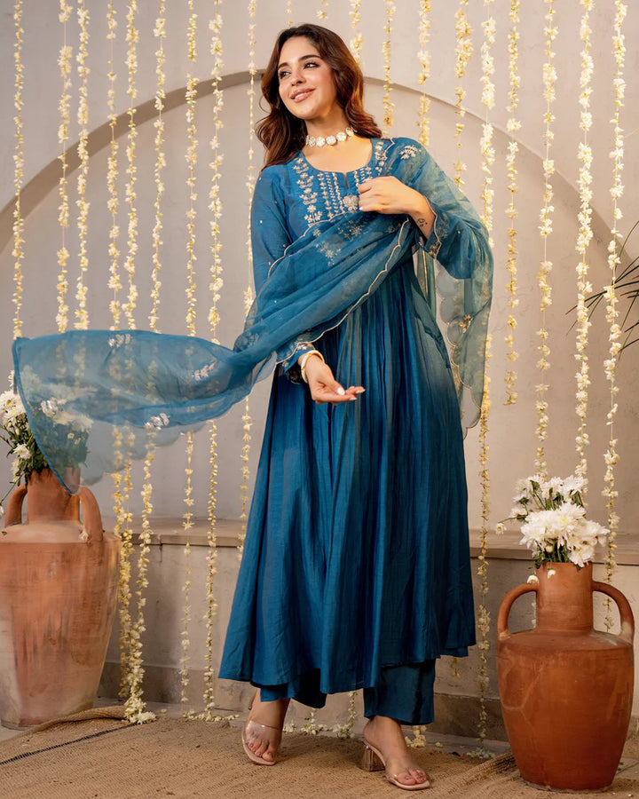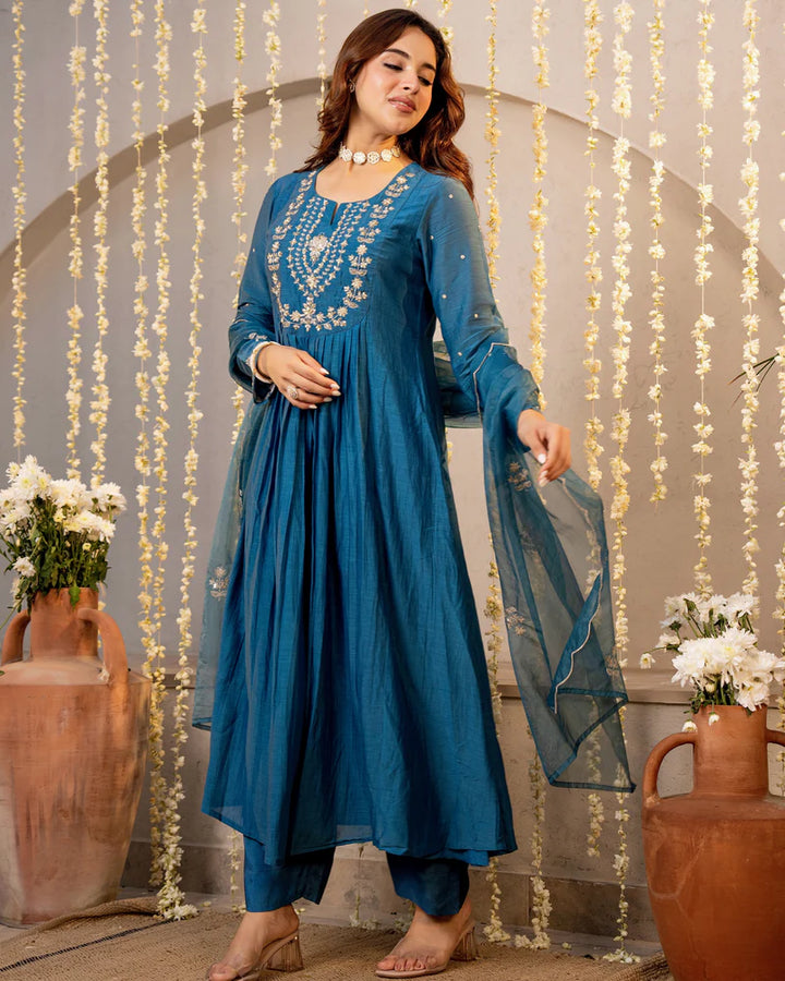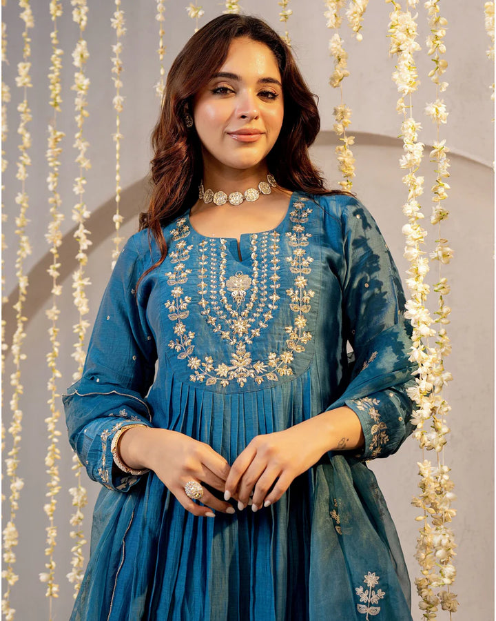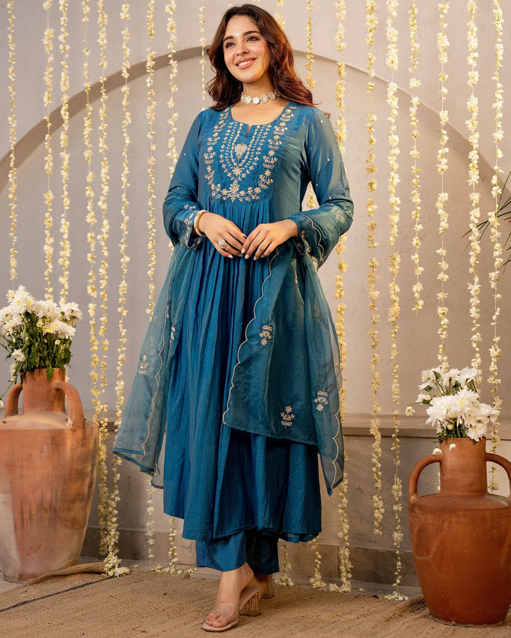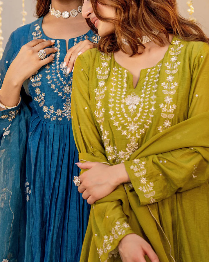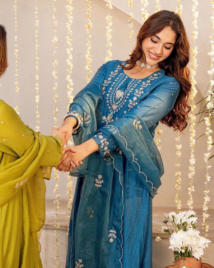 Elevate your wardrobe with our Premium Mul Chanderi Suit Set, a perfect blend elegance and comfort.