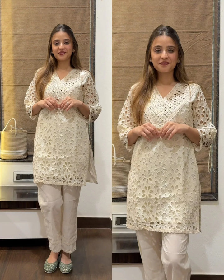OFF WHITE PURE COTTON SCIFFLI CO-ORD SET