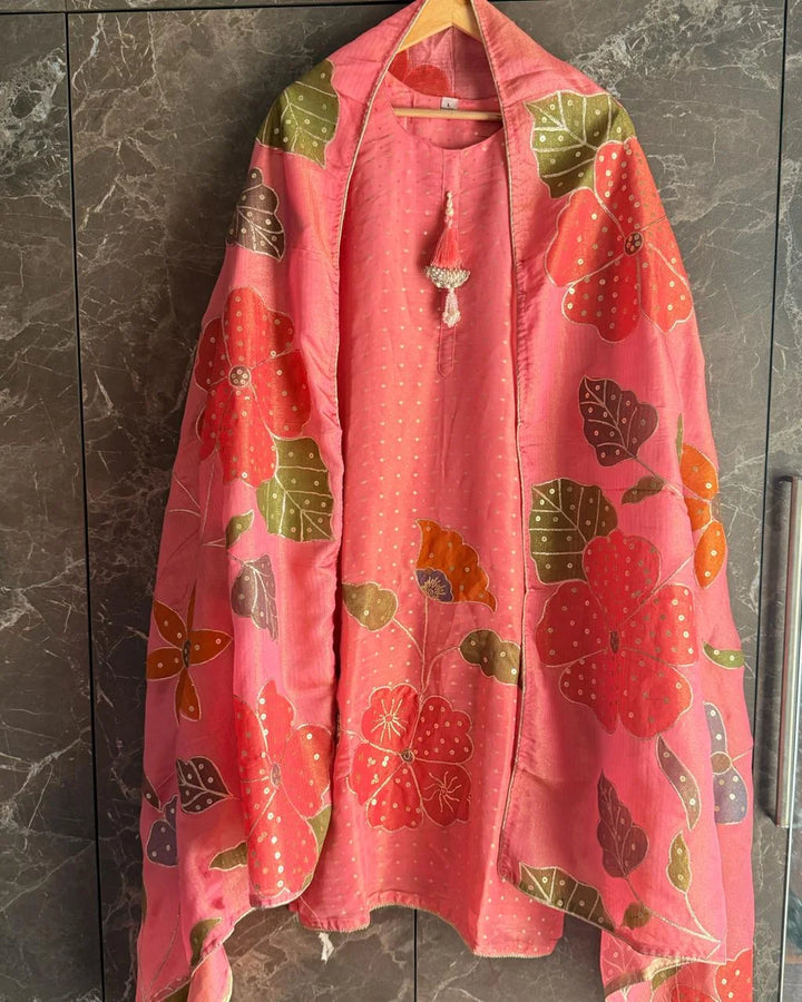 PIHU PEACH PREMIUM TISSUE APPLIQUE SUIT SET