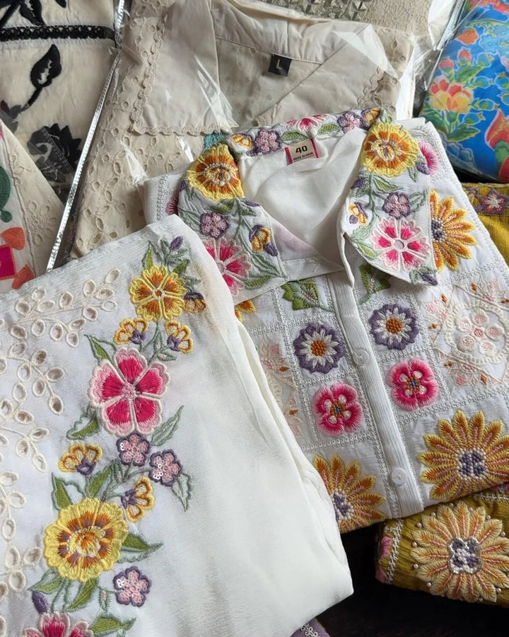 Note: Every piece is hand-embroidered & unique. Hence, embroidery may differ per piece. Colour may slightly vary due to photographic lighting. Fabric and style are consistent.