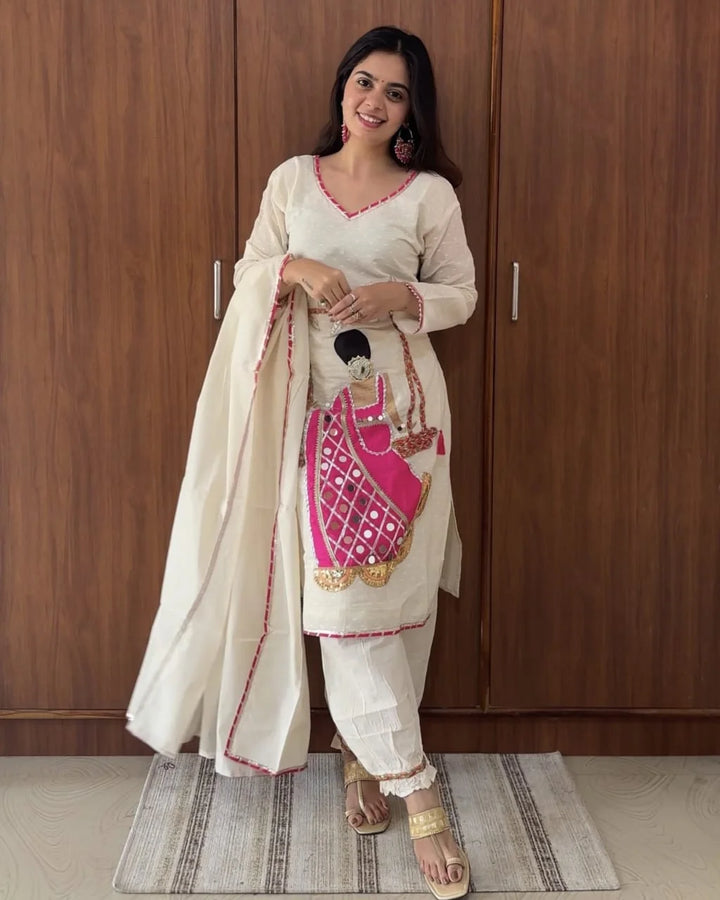 Elevate your wardrobe with our Premium Embroidery Kora Cotton Suit Set, a perfect blend elegance and comfort.