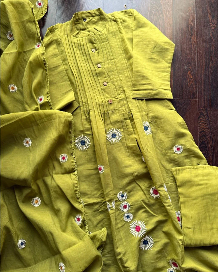 Elevate your wardrobe with our Premium Mul Chanderi Suit Set, a perfect blend elegance and comfort.