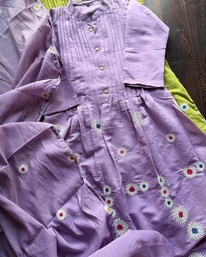 Elevate your wardrobe with our Premium Mul Chanderi Suit Set, a perfect blend elegance and comfort.