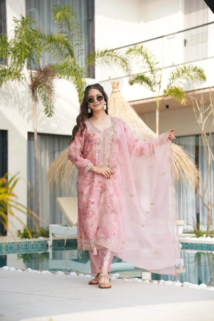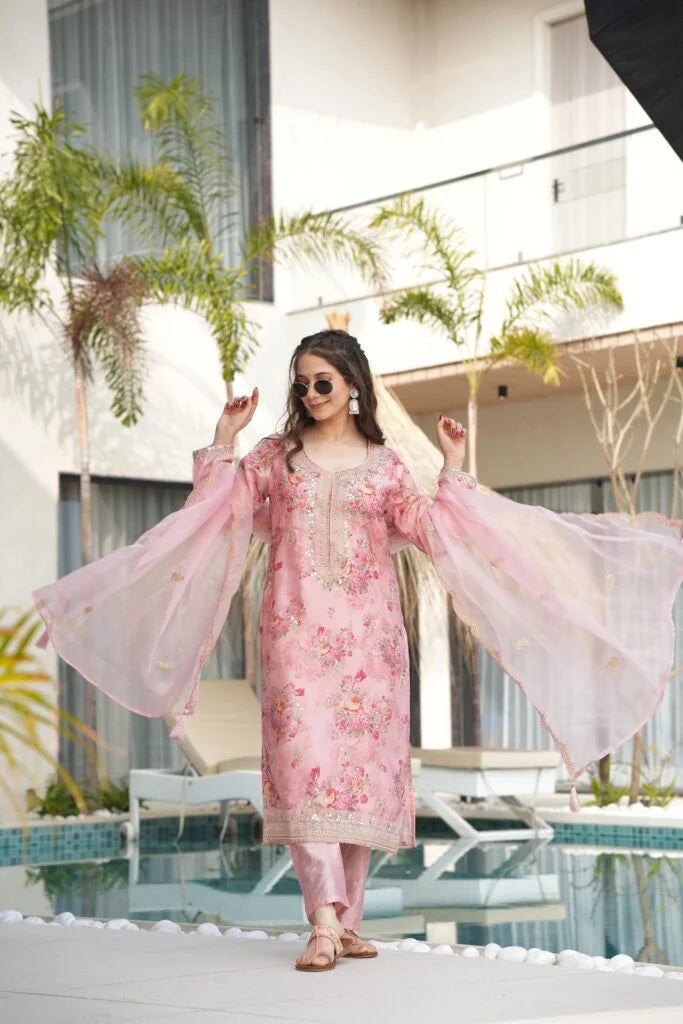 Elevate your wardrobe with our Pure Organza 3 Piece Suit Set, a perfect blend elegance and comfort.