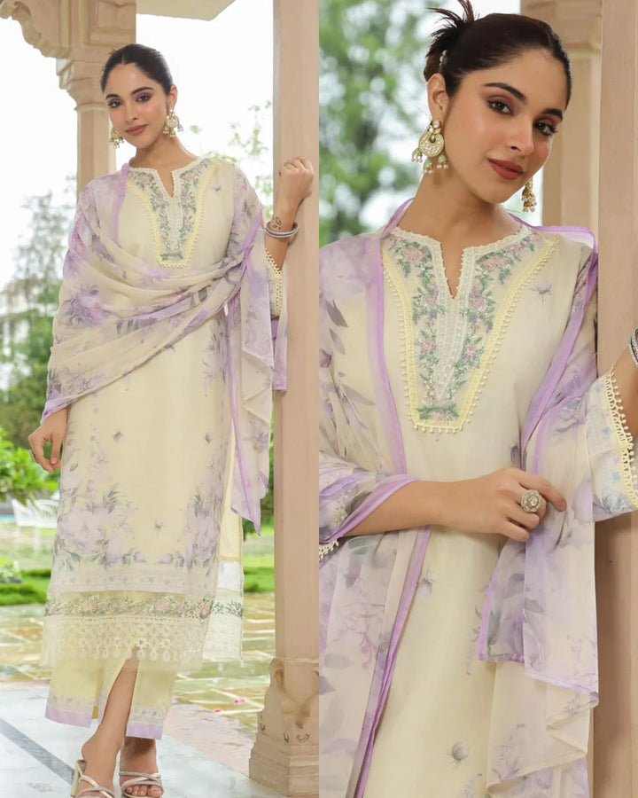 Elevate your wardrobe with our Premium Mul Cotton Pakistani Suit Set, a perfect blend elegance and comfort.
