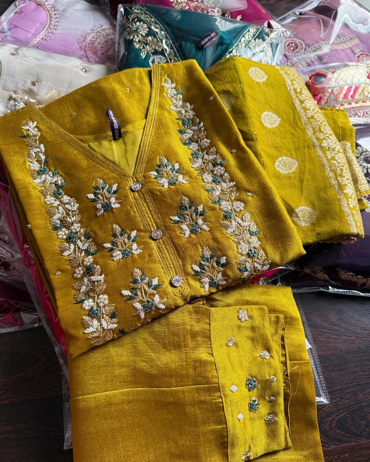 This stunning ensemble is ideal for weddings, festive celebrations, or special occasions, this ensemble is a timeless addition to your wardrobe that combines sophistication, elegance and unparalleled craftsmanship.